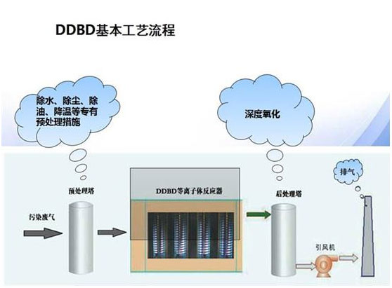 當(dāng)外加電壓達(dá)到氣體的放電電壓時,氣體被擊穿,產(chǎn)生包括電子、各種離子、原子和自由基在內(nèi)的混合體。低溫等離子體降解污染物是利用這些高能電子、自由基等活性粒子和廢氣中的污染物作用,使污染物分子在極短的時間內(nèi)發(fā)生分解,以達(dá)到降解污染物的目的。